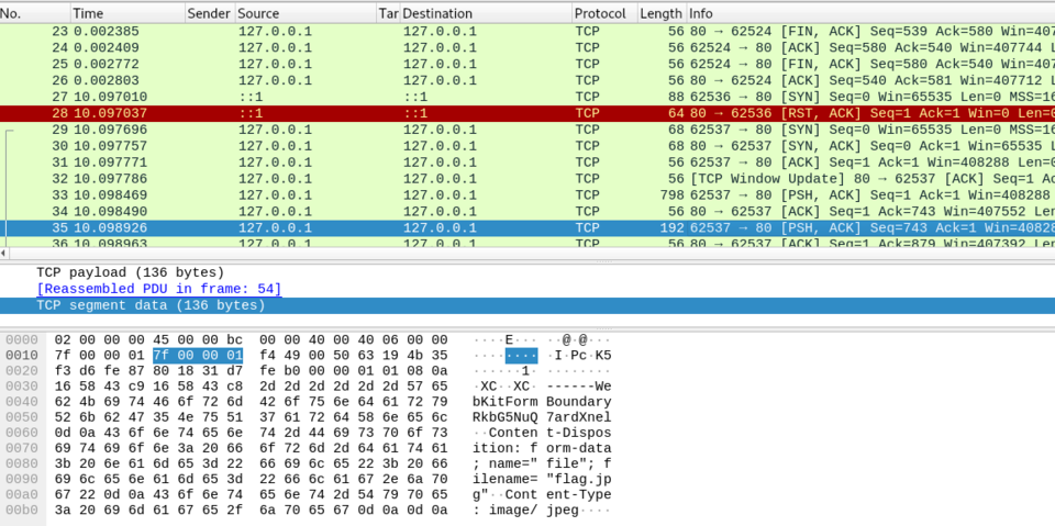 웹페이지에 flag.jpg 파일을 업로드하는 패킷이 캡쳐가 된 듯 하다.