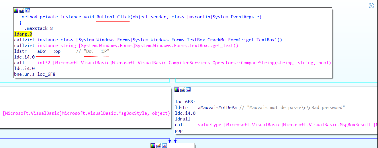 오른쪽 Functions window에서 Button1_Click 이라는 함수를 찾았다.