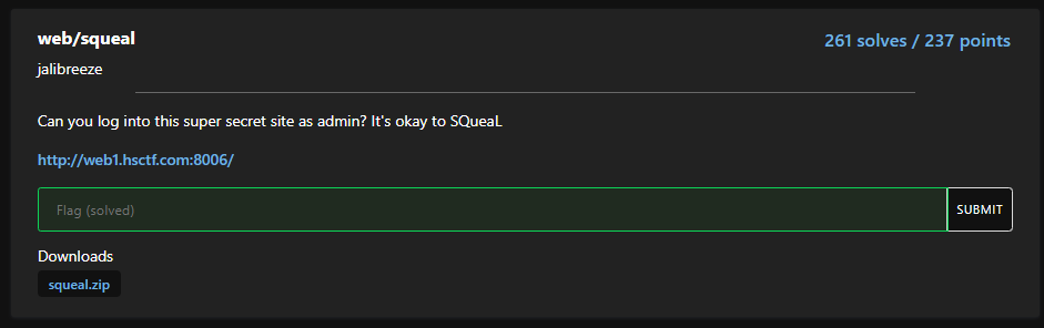 문제 제목부터 SQueaL 이라고 힌트를 주고 있어서