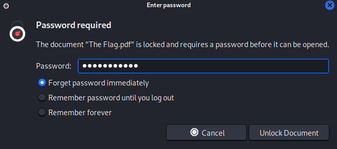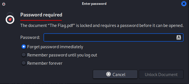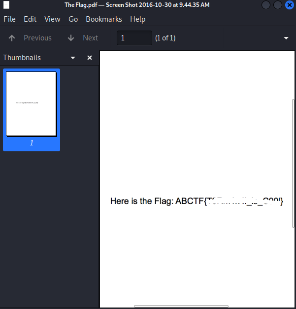 아까 GUI 환경에서 봤던것처럼 The Flag.pdf 파일이 있는게 보인다.