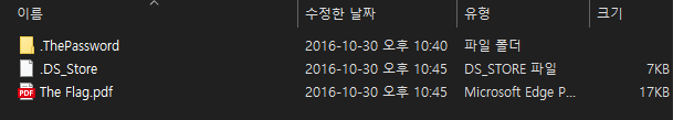 아까는 보이지 않았던 .DS_Store 파일과 .ThePassword 폴더가 있는게 보인다.