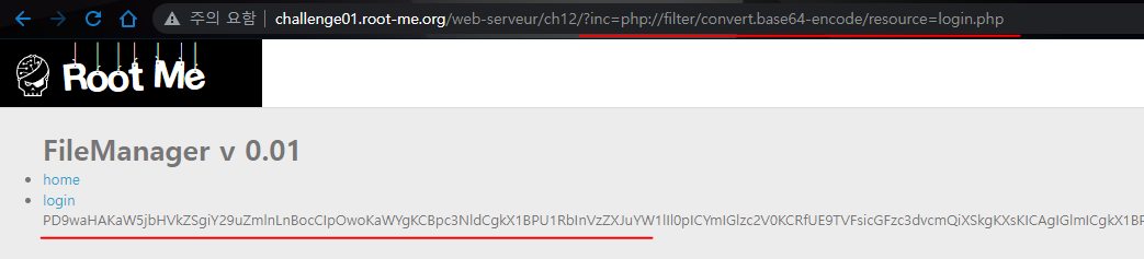 login.php 파일을 읽어와서 base64로 인코딩한 뒤에 출력해라 정도로 해석하면 된다.