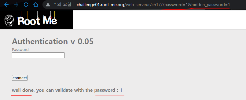 URL에 ?password=1&hidden_password=1 라고 전달해서