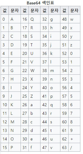 이렇게 표현하는것이 base64 이다.