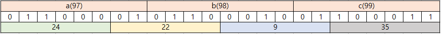 ASCII 코드로 각각 a는 97, b는 98, c는 99로 나타낼 수 있다.