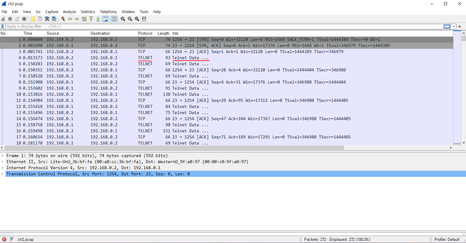 문제에서 제공되는 파일은 ch2.pcap 파일이다.