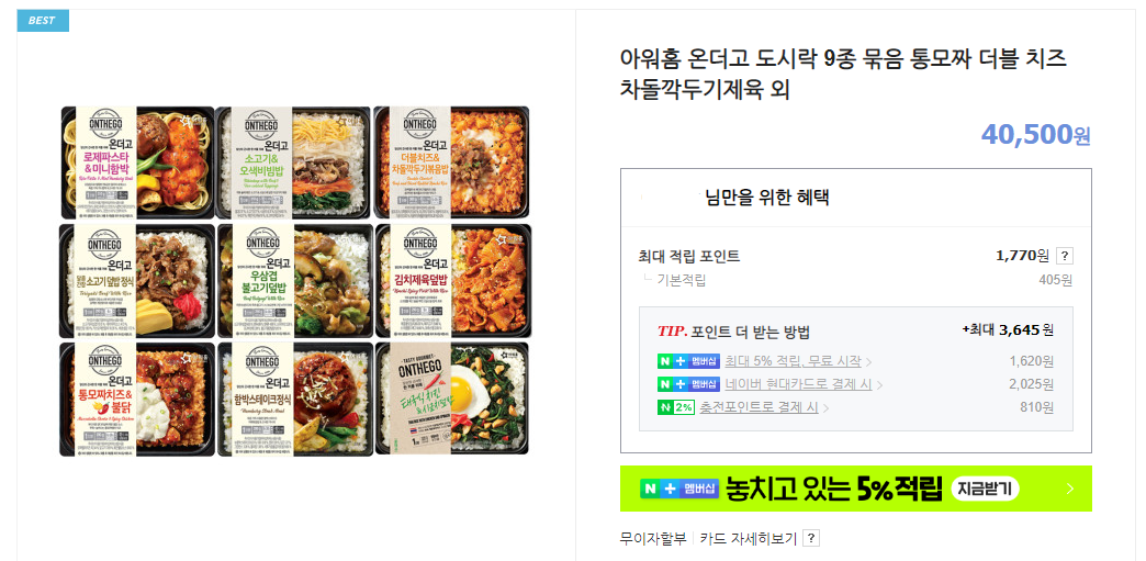 대신 루틴밀 말고 다양한 제품을 먹어보고 싶어서 이번엔 아워홈 온더고 도시락을 주문했다.