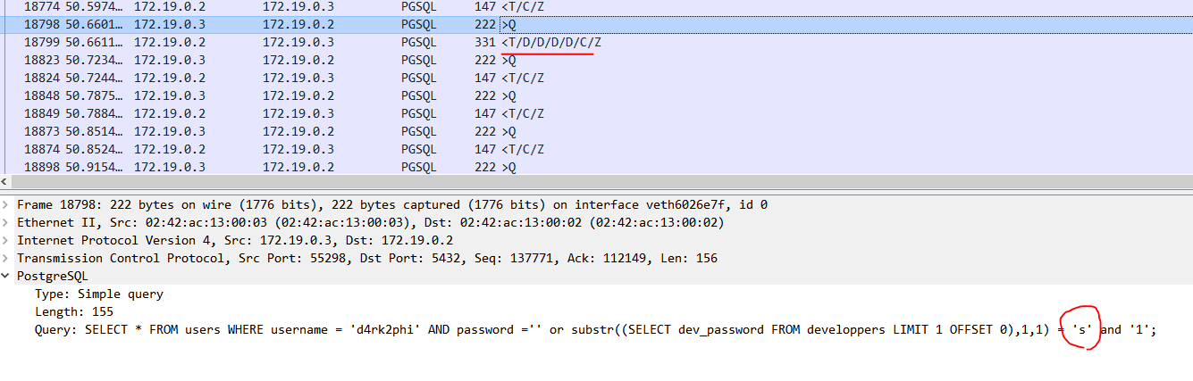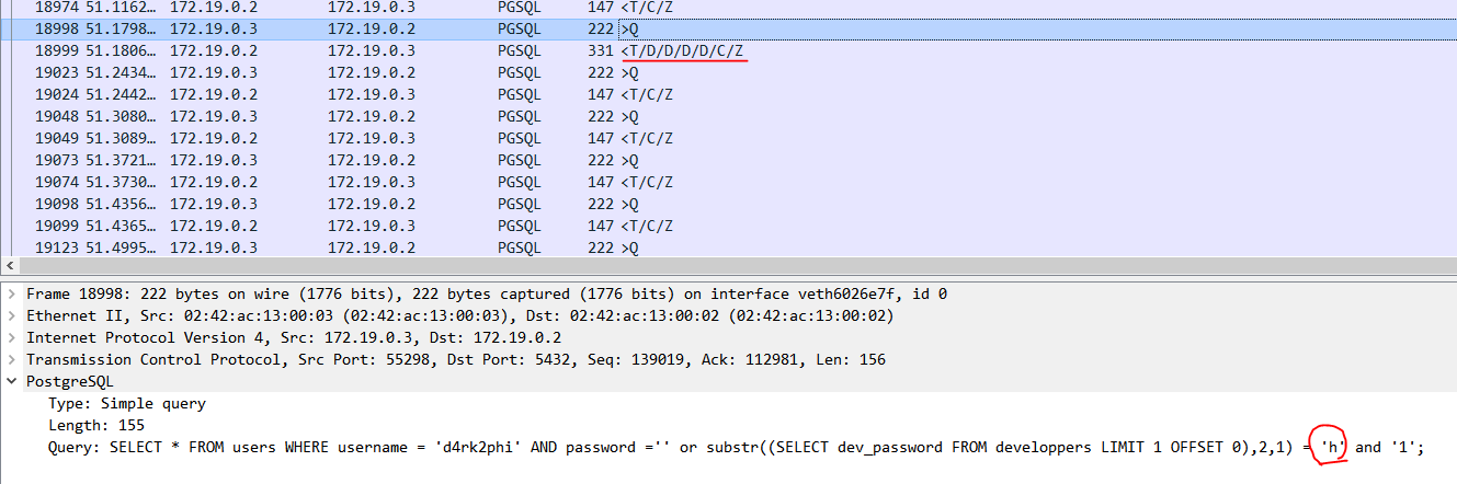 <T<D<D<D<C<Z 라는 문자열이 보이면 직전에 보냈던 쿼리가 True가 나온것이므로