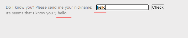밑에 그대로 내가 쓴 닉네임을 echo 해주는 단순한 기능을 가진 웹페이지이다.