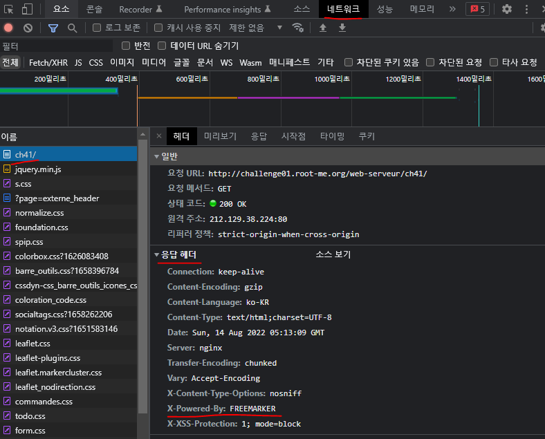 X-Powered-By : FREEMARKER 라고 적힌 헤더를 찾을 수 있다.