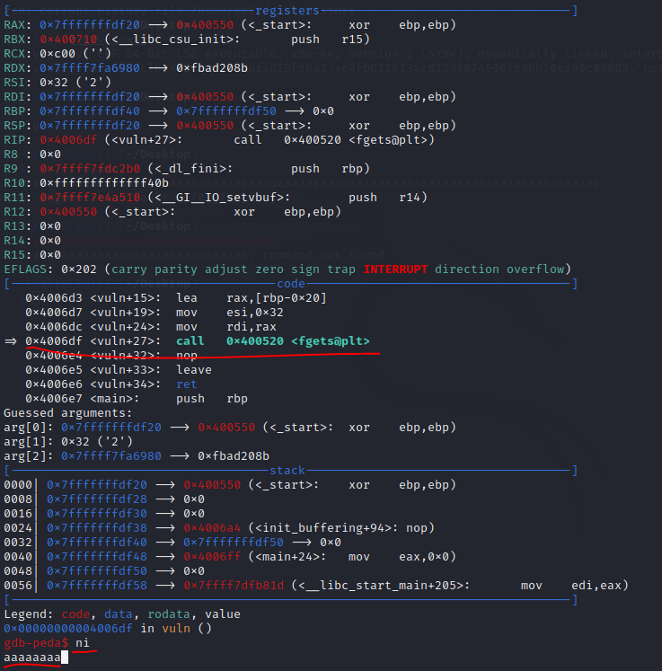 계속 진행시키다가 vuln+27 부분에 오면 fgets 함수를 call 하고있는데