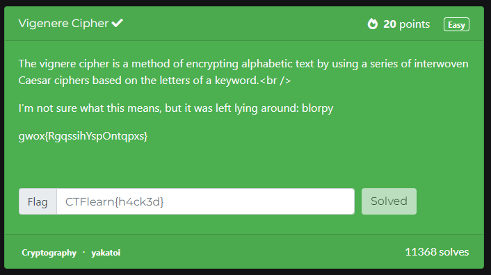 문제 제목에 써있는것처럼 비제네르 암호와 관련된 문제이다.