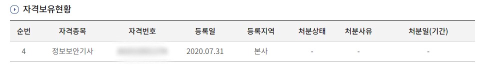 2020년 7월 아직 KISA에서 시험을 주관하던 시절 취득한 정보보안기사