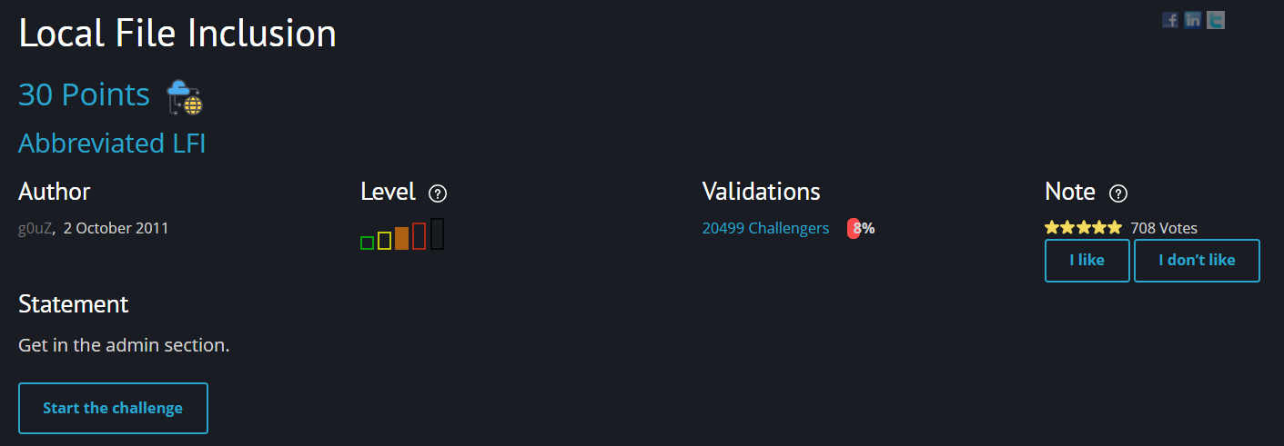 | [Root Me] Local File Inclusion - Double encoding - 웹해킹 / LFI / PHP wrapper (57) | 2022.08.29 |