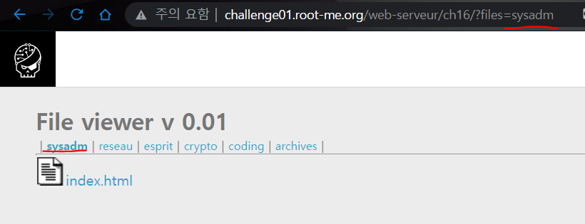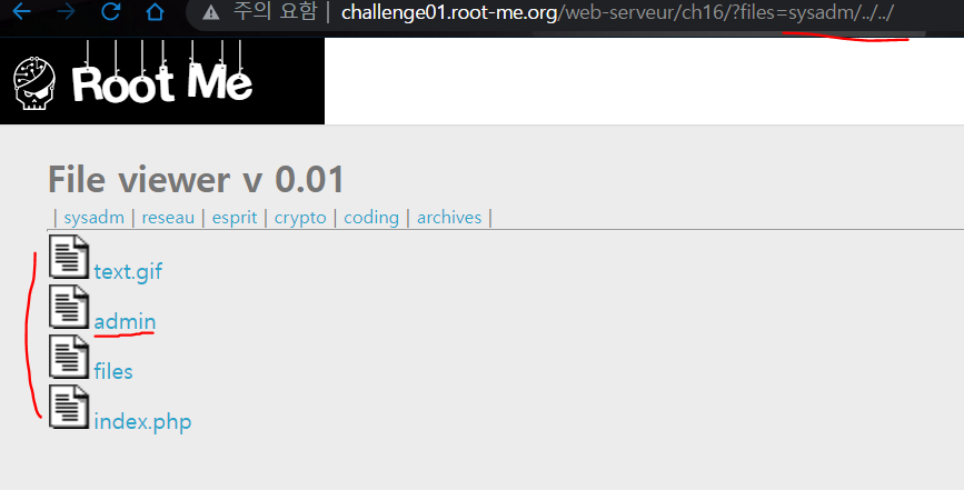 URL에 ?files=sysadm/../../ 라고 입력해봤다.
