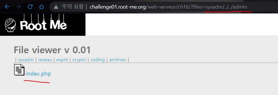 URL에 ?files=sysadm/../../admin 이라고 입력해준다.
