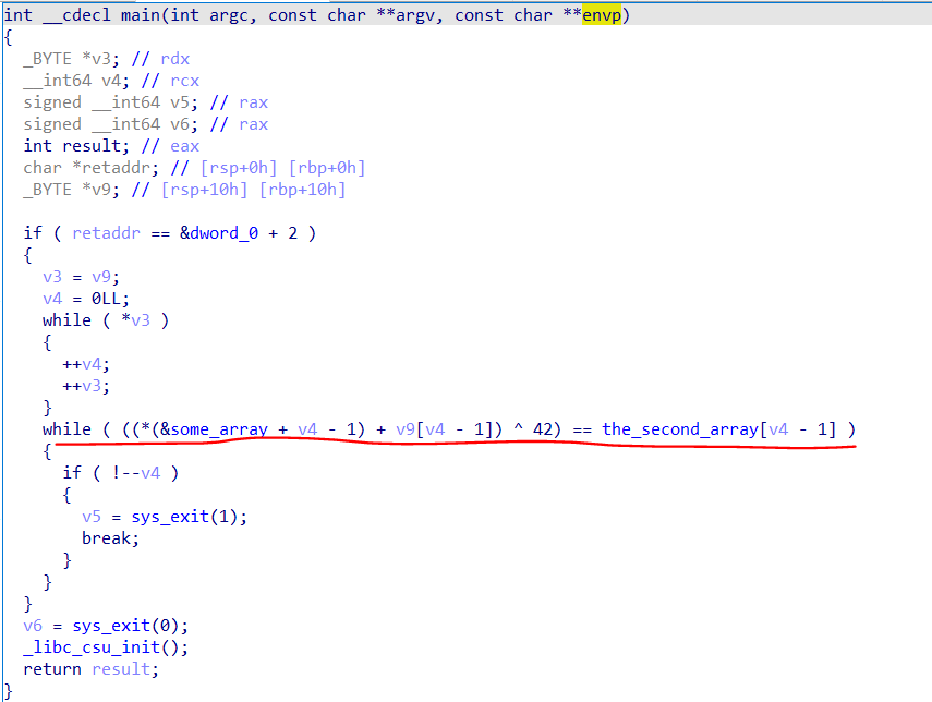 그걸 42와 XOR 한 값이 the_second_array 에 있는값과 같은지 비교하고 있다.
