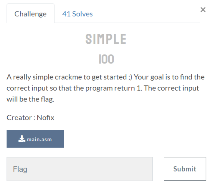 문제 제목처럼 간단한 어셈블리 리버싱 문제