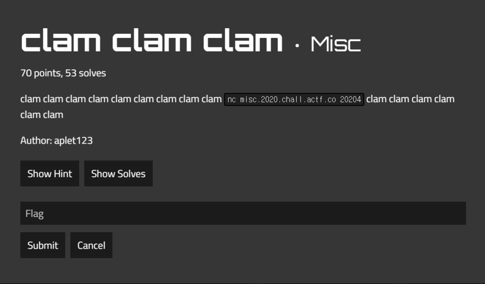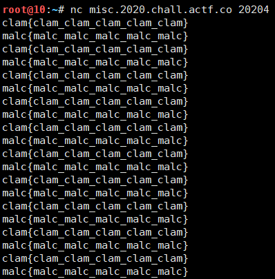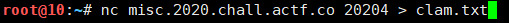 문제 설명 중간에 보면 nc misc.2020.chall.actf.co 20204 라고 적혀있는데