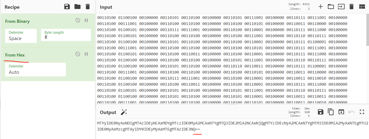 다시한번 From Hex 를 이용해 디코딩해주었다.