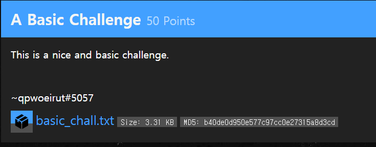 문제파일로 basic_chall.txt 파일이 주어진다.