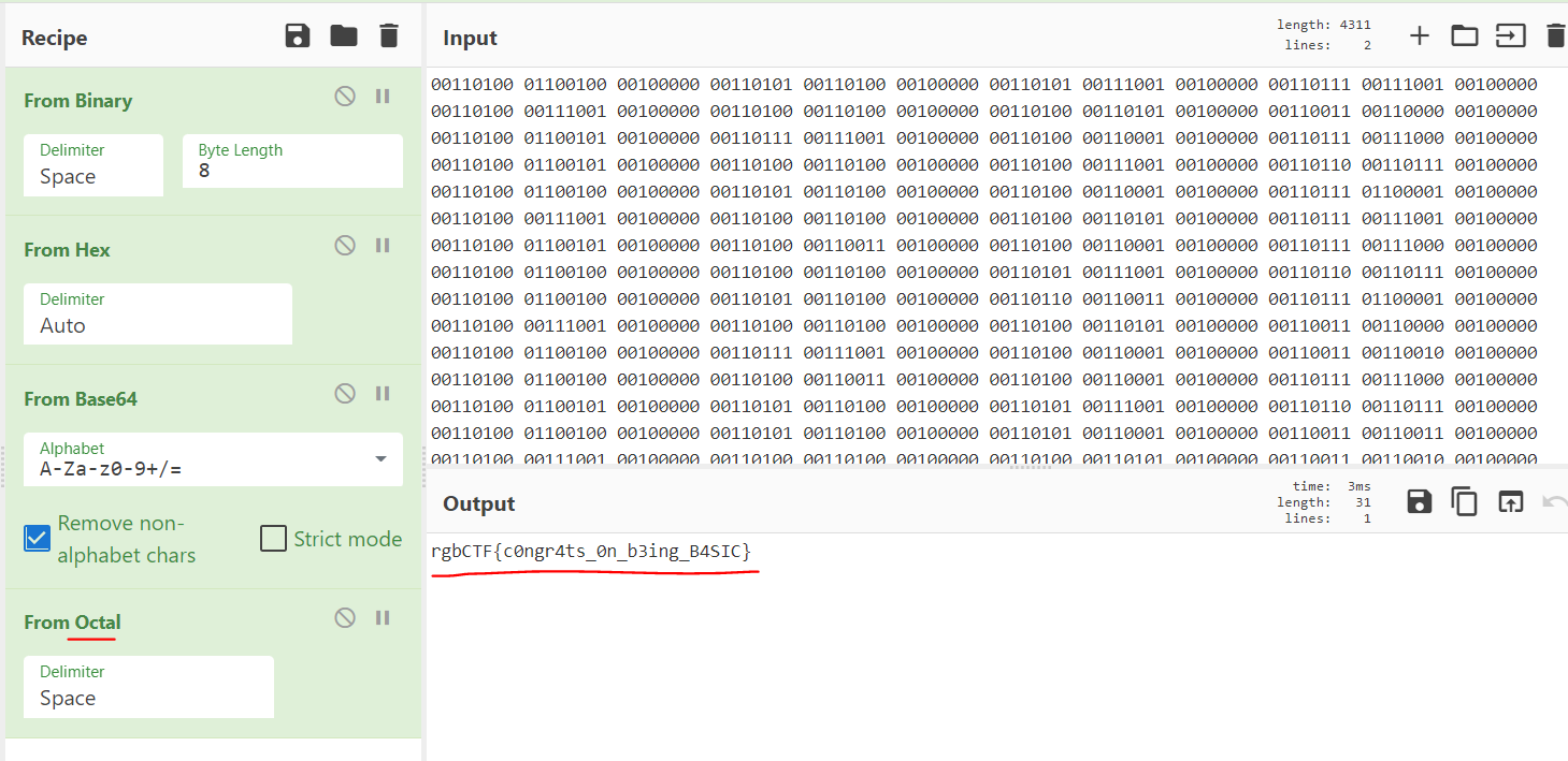 마지막으로 From Octal 을 이용해 디코딩해주면