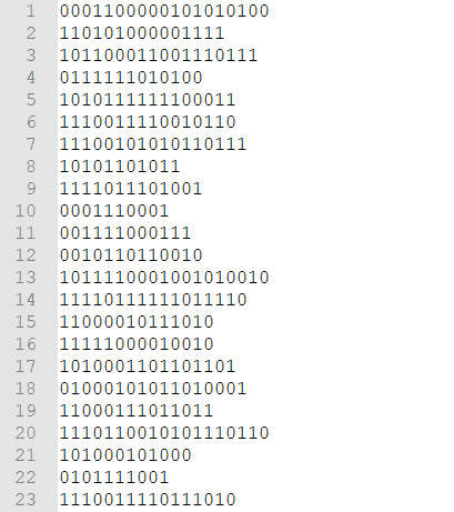 여기서 각 line의 0과 1의 갯수를 센 후,