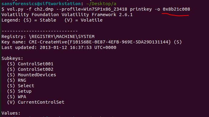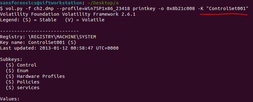 -o 옵션을 줘서 아까 봤던 Virtual 주소를 넣어주면 SYSTEM 레지스트리를 볼 수 있다.