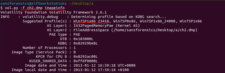 Volatility 를 사용해 분석하기 위해선 먼저 제공된 메모리 덤프의 프로필을 알아야 한다.
