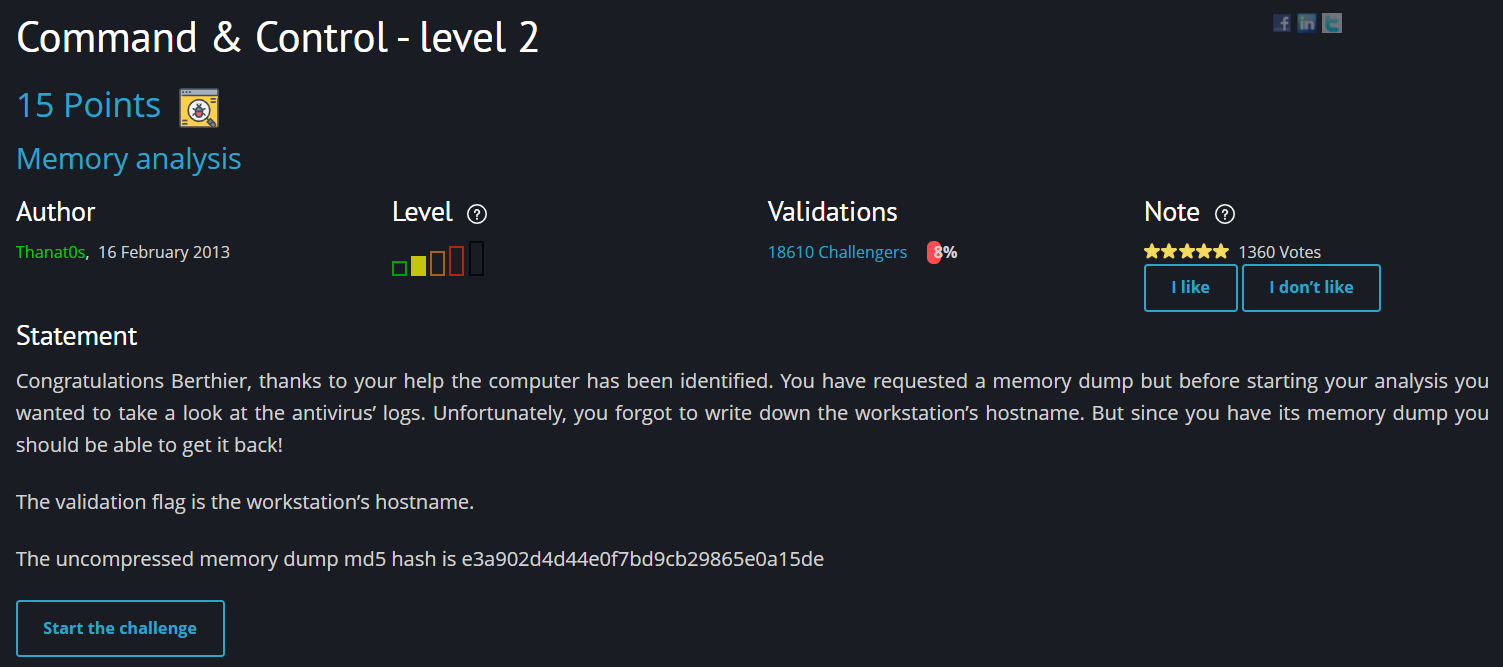 Root Me에서 제공하는 첫번째 메모리 포렌식 문제