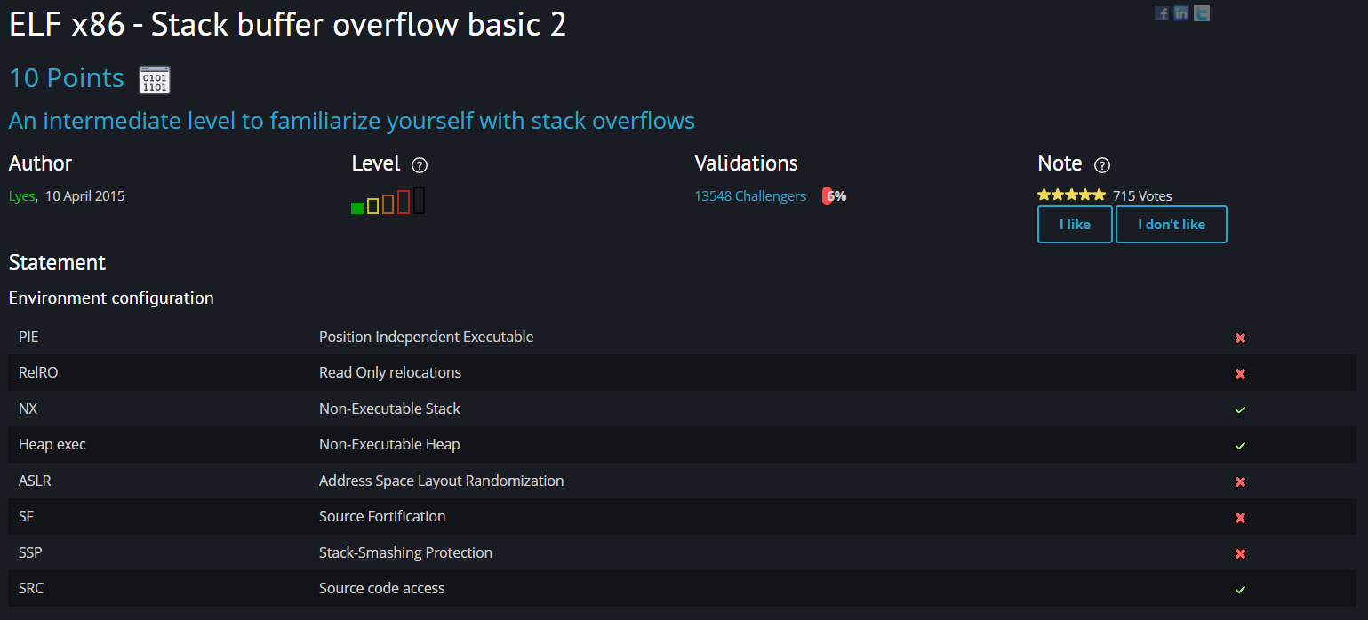 | [Root Me] ELF x86 - Stack buffer overflow basic 1 - 포너블 / 버퍼오버플로우 (36) | 2022.09.03 |