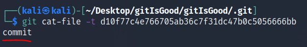 d10f77c4e766705ab36c7f31dc47b0c5056666bb 는 commit 객체인 것을 확인할 수 있다.