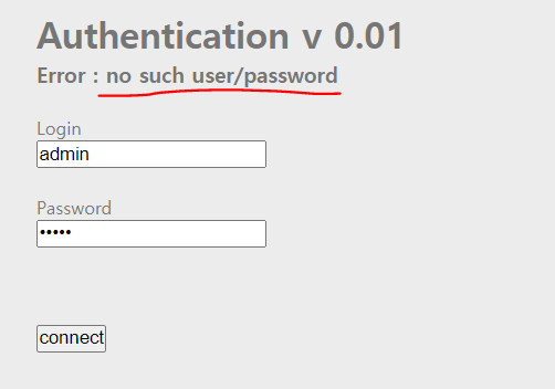 당연하게 Error : no such user/password 라는 문구가 출력된다.