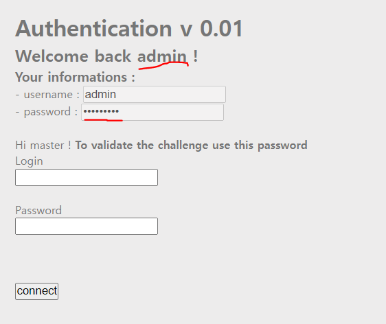 마스킹되어있던 admin의 비밀번호를 확인할 수 있다.
