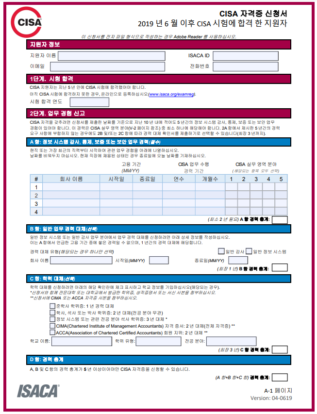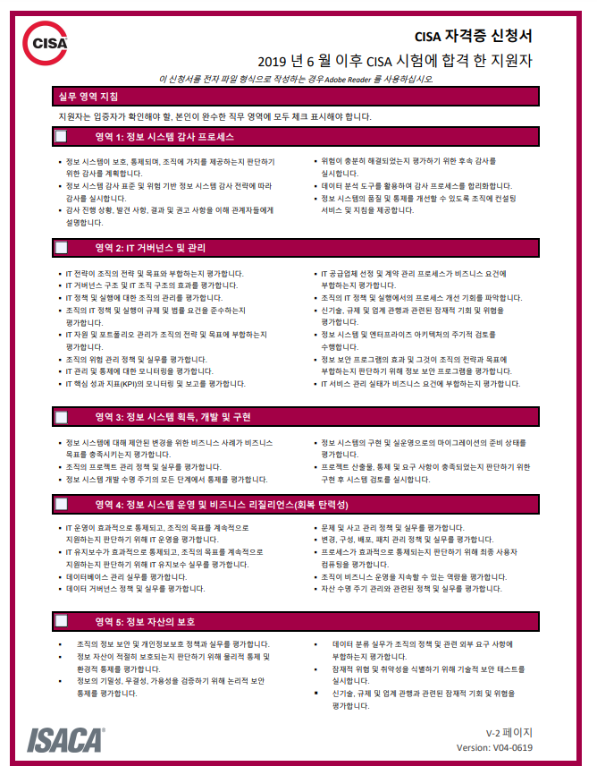 기다리고 기다리던 CISA 자격증을 만나볼 수 있다.