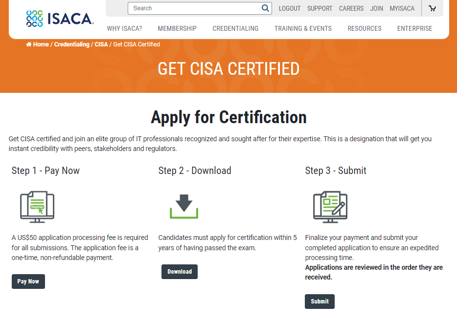 (링크 : https://www.isaca.org/credentialing/cisa/get-cisa-certified)