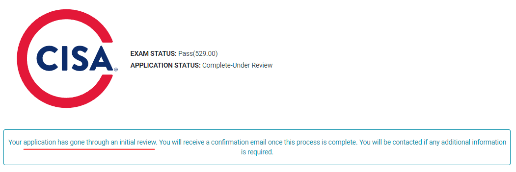 제출까지 완료하면 MYISACA 페이지의 Certification 메뉴에 이런 문구가 나온다.