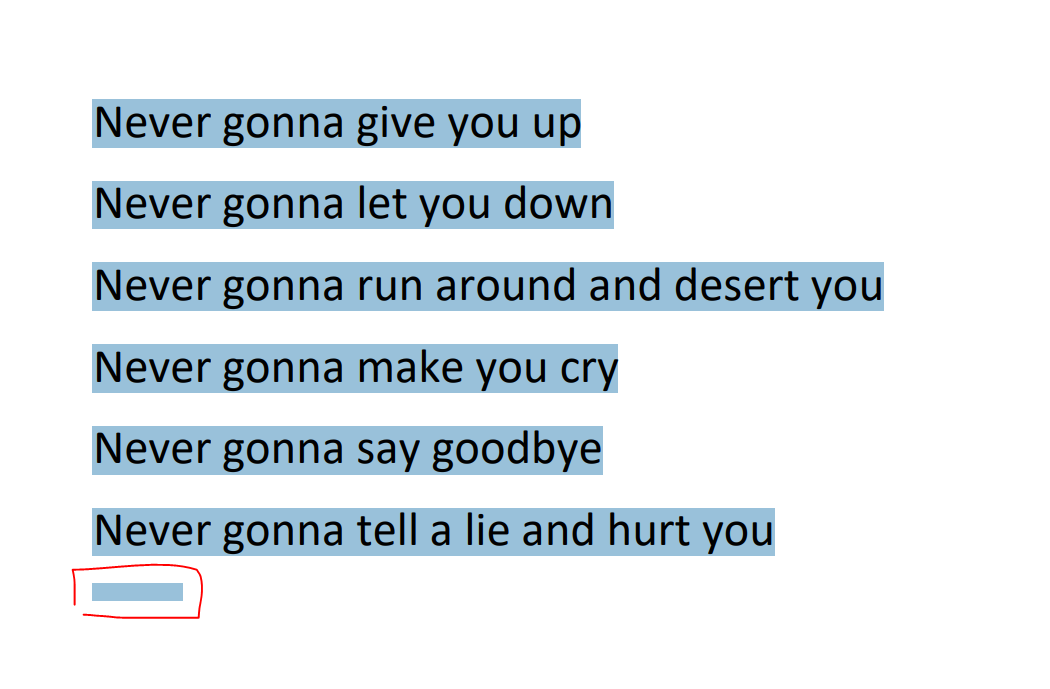 유튜브 링크인 Rick Astley - Never Gonna Give You Up 노래의 가사 일부이다.