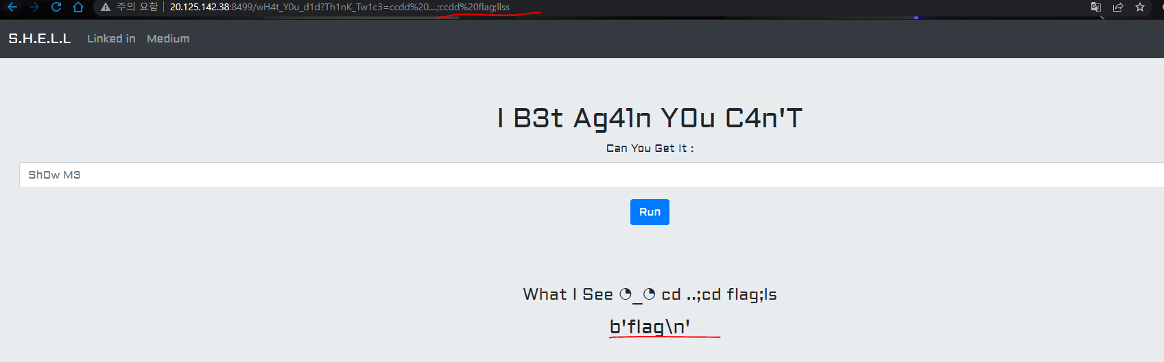 마지막에 cat flag.txt 를 붙여 내용을 읽어봤는데
