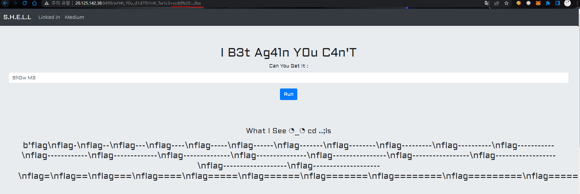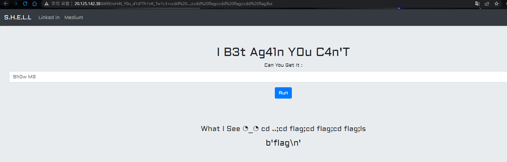 ccdd ....;ccdd flag; llss 라고 입력하면