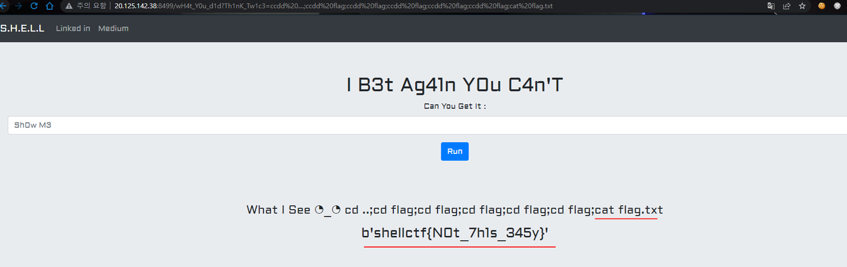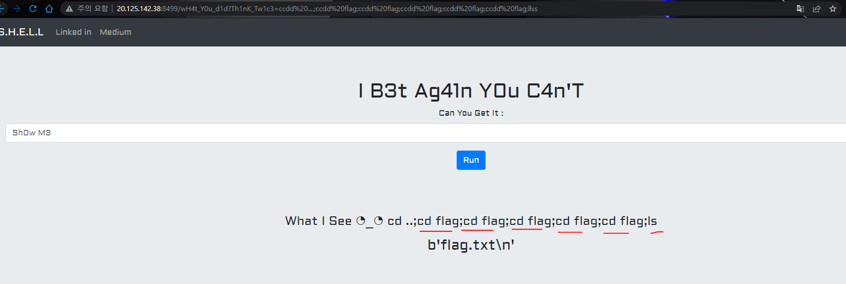 마지막에 cat flag.txt 를 붙여 내용을 읽어봤는데