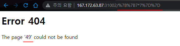 URL 인코딩이 되어서 %7B%7B7*7%7D%7D 라고 보이게 된다.