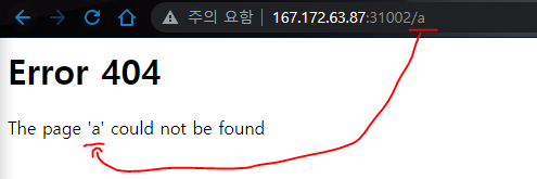 404 페이지에서 나오는 안내문구에 URL에서 입력한 경로가 그대로 찍혀서 나오는 것을 볼 수 있다.