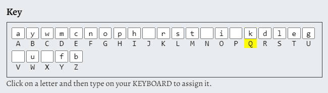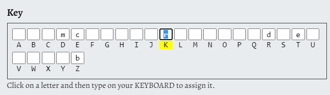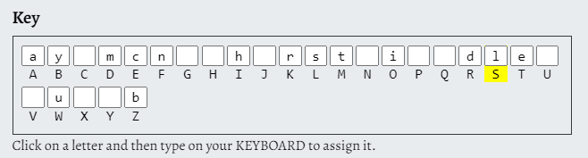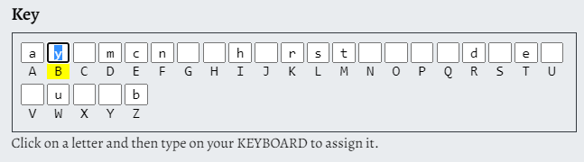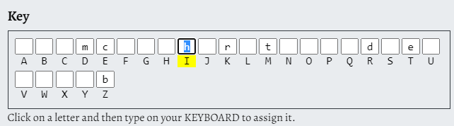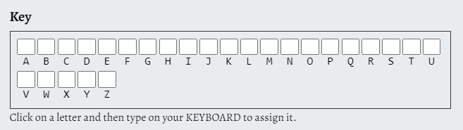 key 에 보면 알파벳들을 어떤 알파벳으로 치환할 것인지 적어넣을 수 있다.