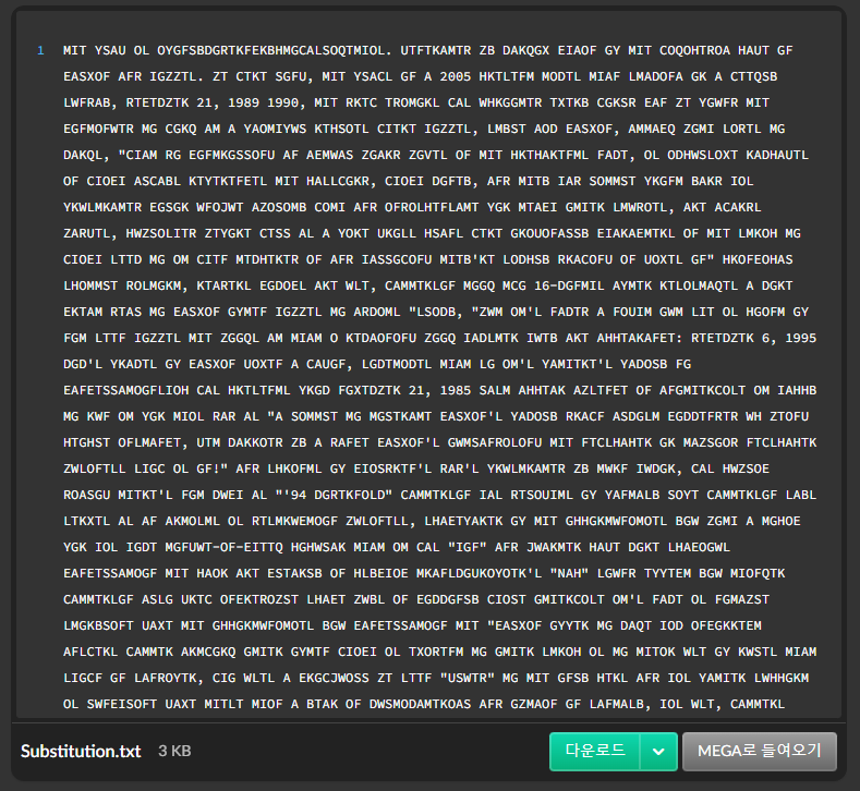 치환 암호를 풀수 있는 사이트를 찾아가 암호를 풀어준다.