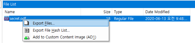 해당 파일에 우클릭 - Export Files 버튼을 눌러 복원해준다.