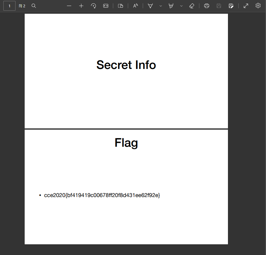 secret 라는 폴더가 있고, 그안에 secret.pdf 라는 이름의 파일이 있는것을 확인할 수 있다.