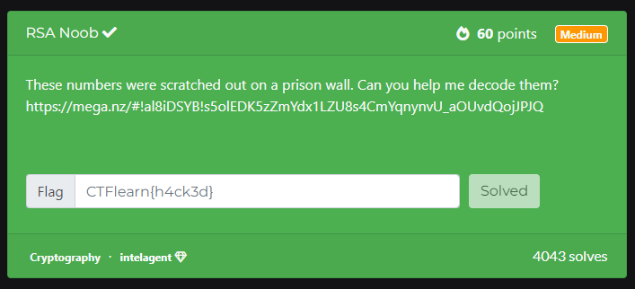 보통 CTF에서 n, e, c가 주어지면 RSA 문제라고 보면 된다.